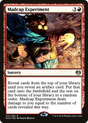 Reveal cards from the top of your library until you reveal an artifact card. Put that card onto the battlefield and the rest on the bottom of your library in a random order. Madcap Experiment deals damage to you equal to the number of cards revealed this way.