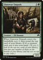 When Llanowar Empath enters the battlefield, scry 2, then reveal the top card of your library. If it's a creature card, put it into your hand. (To scry 2, look at the top two cards of your library, then put any number of them on the bottom of your library and the rest on top in any order.)