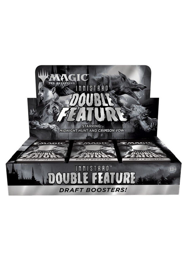 More monsters! More horror! More drafts! Innistrad: Double Feature combines cards across both Innistrad: Midnight Hunt and Innistrad: Crimson Vow into a beautiful draft-ready booster to play and collect! Innistrad: Double Feature is available in displays of 24 Draft Boosters in English only, and each booster contains the following distribution of 15 cards: