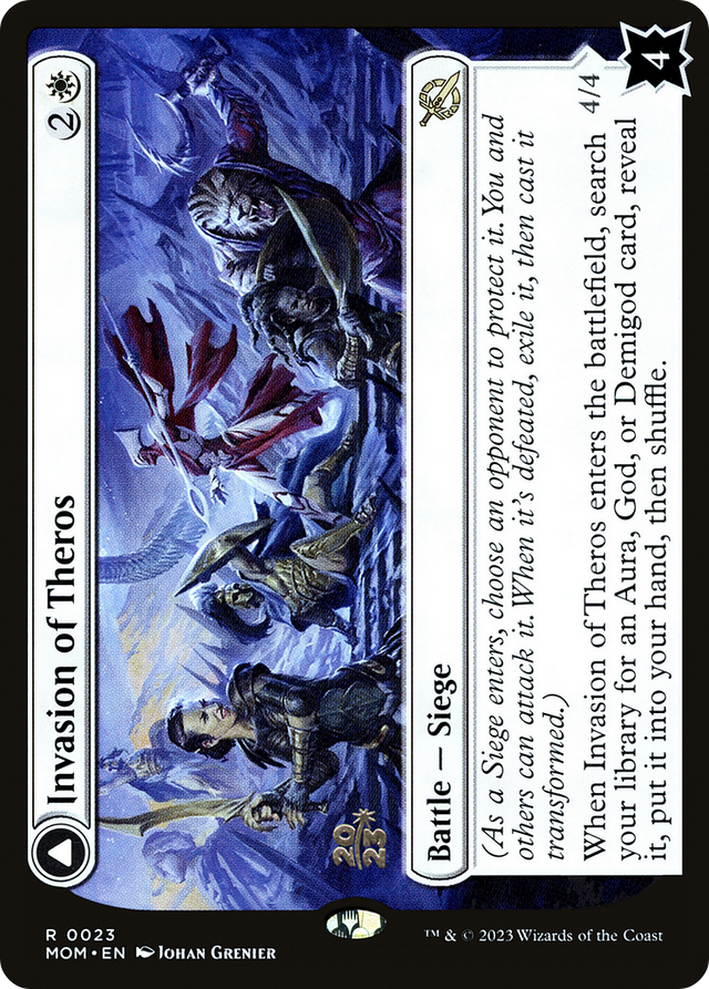 When Invasion of Theros enters the battlefield, search your library for an Aura, God, or Demigod card, reveal it, put it into your hand, then shuffle. // Ephara, Ever-Sheltering has lifelink and indestructible as long as you control at least three other enchantments.