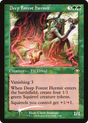 Vanishing 3 (This creature enters the battlefield with three time counters on it. At the beginning of your upkeep, remove a time counter from it. When the last is removed, sacrifice it.) When Deep Forest Hermit enters the battlefield, create four 1/1 green Squirrel creature tokens. Squirrels you control get +1/+1.