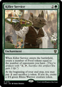 When Killer Service enters the battlefield, create a number of Food tokens equal to the number of opponents you have. (They're artifacts with "{2}, {T}, Sacrifice this artifact: You gain 3 life.")