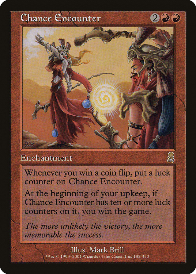 Whenever you win a coin flip, put a luck counter on Chance Encounter. At the beginning of your upkeep, if Chance Encounter has ten or more luck counters on it, you win the game.