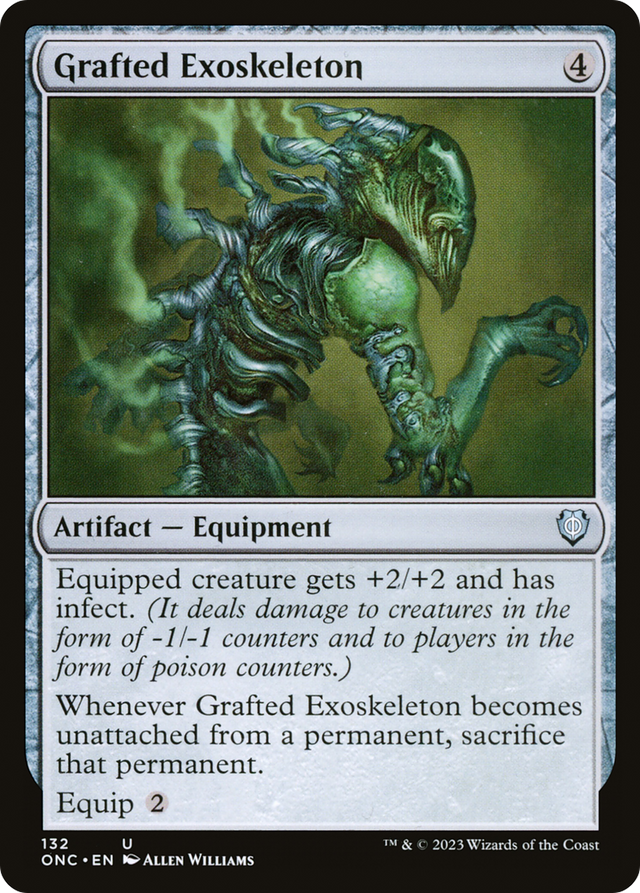Whenever Grafted Exoskeleton becomes unattached from a permanent, sacrifice that permanent.