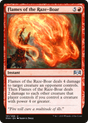 Flames of the Raze-Boar deals 4 damage to target creature an opponent controls. Then Flames of the Raze-Boar deals 2 damage to each other creature that player controls if you control a creature with power 4 or greater.