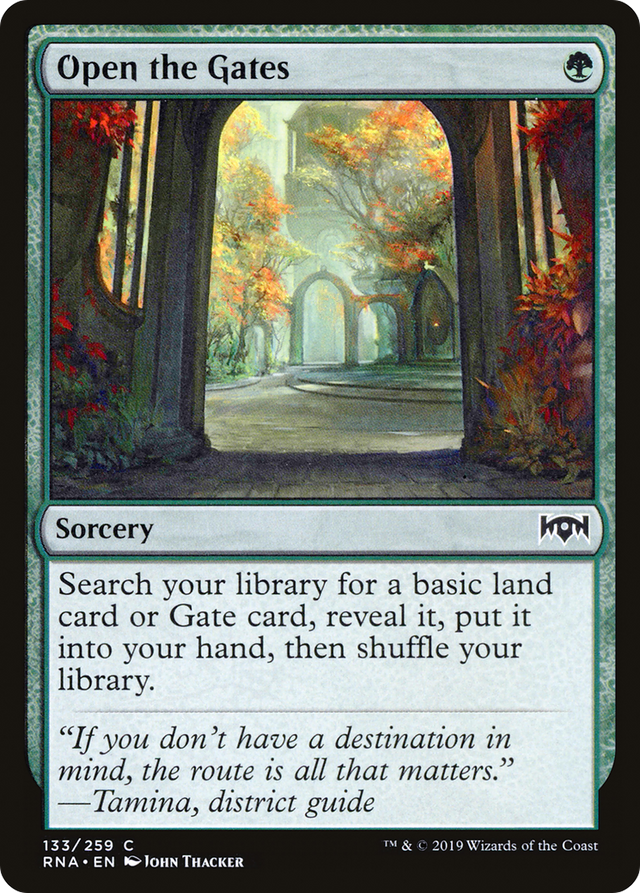 Search your library for a basic land card or Gate card, reveal it, put it into your hand, then shuffle.