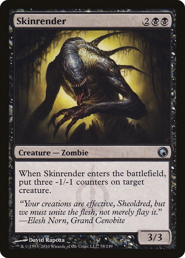 When Skinrender enters the battlefield, put three -1/-1 counters on target creature.