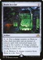 {1}, {T}: Put a charge counter on Brain in a Jar, then you may cast an instant or sorcery spell with mana value equal to the number of charge counters on Brain in a Jar from your hand without paying its mana cost. {3}, {T}, Remove X charge counters from Brain in a Jar: Scry X.
