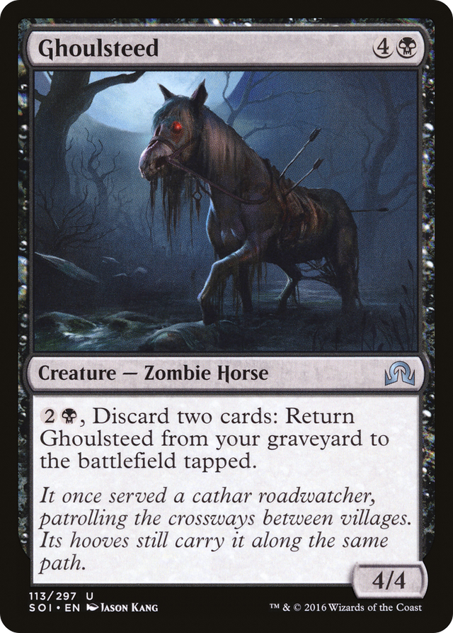 {2}{B}, Discard two cards: Return Ghoulsteed from your graveyard to the battlefield tapped.