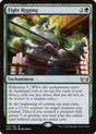 Hideaway 5 (When this enchantment enters the battlefield, look at the top five cards of your library, exile one face down, then put the rest on the bottom in a random order.) At the beginning of combat on your turn, put a +1/+1 counter on target creature you control. Then if you control a creature with power 7 or greater, you may play the exiled card without paying its mana cost.