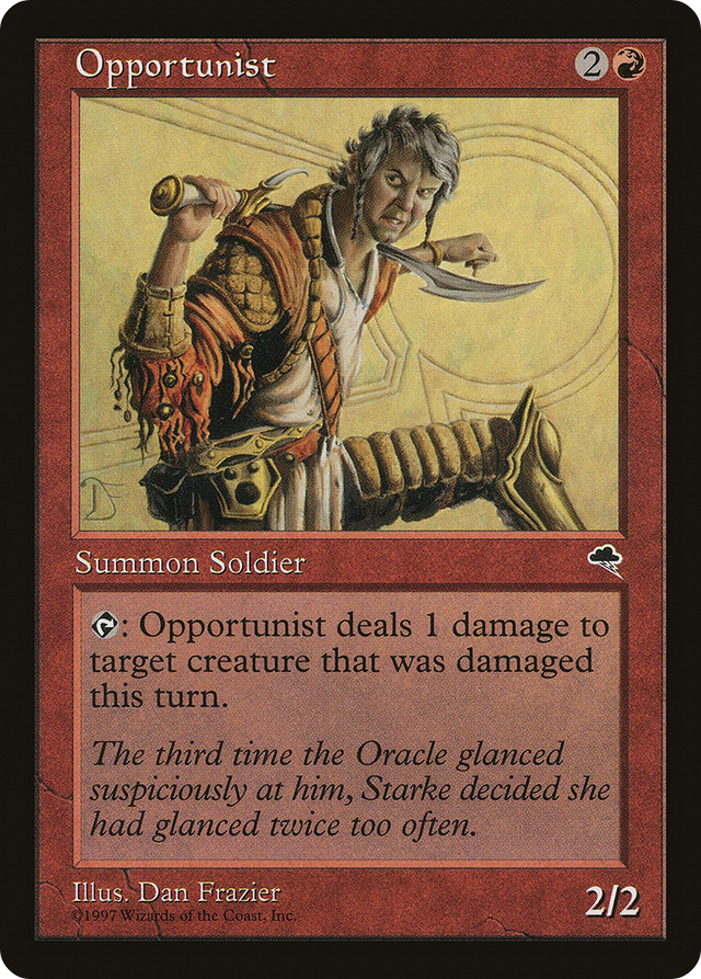 {T}: Opportunist deals 1 damage to target creature that was dealt damage this turn.