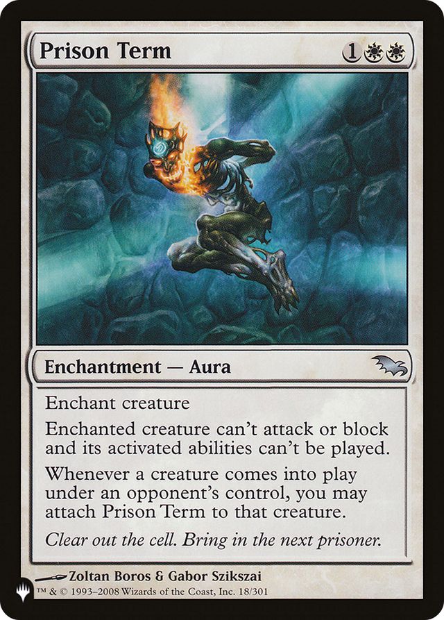 Whenever a creature enters the battlefield under an opponent's control, you may attach Prison Term to that creature.