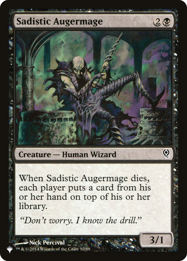 When Sadistic Augermage dies, each player puts a card from their hand on top of their library.