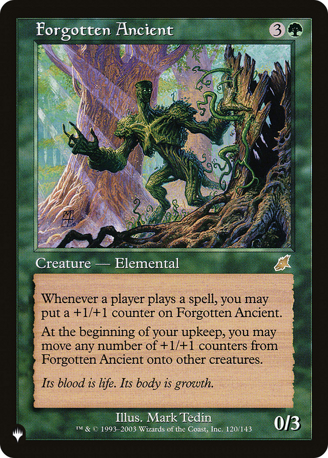 At the beginning of your upkeep, you may move any number of +1/+1 counters from Forgotten Ancient onto other creatures.