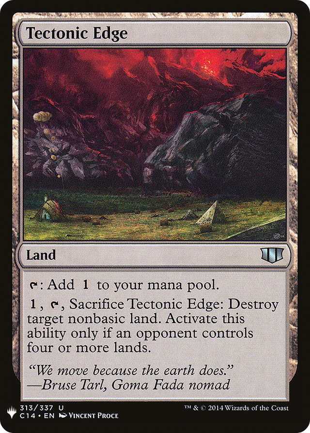 {T}: Add {C}. {1}, {T}, Sacrifice Tectonic Edge: Destroy target nonbasic land. Activate only if an opponent controls four or more lands.