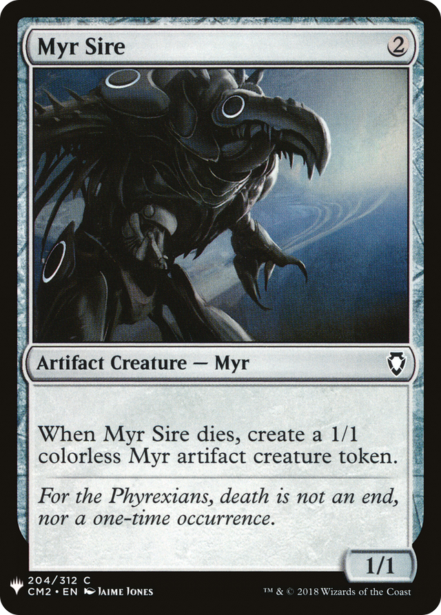 When Myr Sire dies, create a 1/1 colorless Phyrexian Myr artifact creature token.