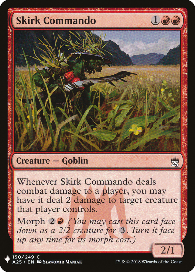 Whenever Skirk Commando deals combat damage to a player, you may have it deal 2 damage to target creature that player controls.