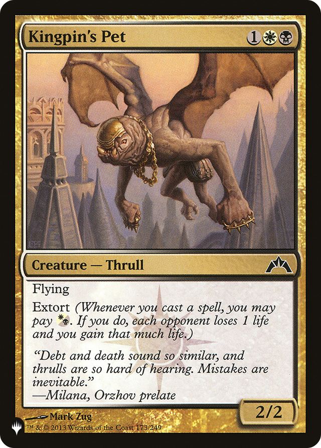 Flying Extort (Whenever you cast a spell, you may pay {W/B}. If you do, each opponent loses 1 life and you gain that much life.)