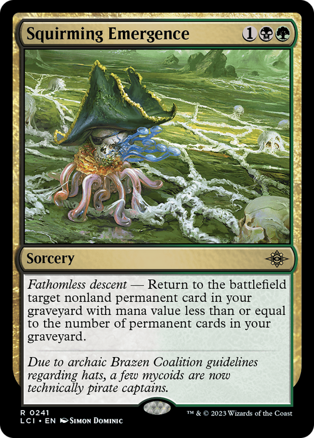 Fathomless descent — Return to the battlefield target nonland permanent card in your graveyard with mana value less than or equal to the number of permanent cards in your graveyard.