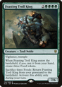 Vigilance, trample When Feasting Troll King enters the battlefield, if you cast it from your hand, create three Food tokens. (They're artifacts with "{2}, {T}, Sacrifice this artifact: You gain 3 life.") Sacrifice three Foods: Return Feasting Troll King from your graveyard to the battlefield. Activate only during your turn.