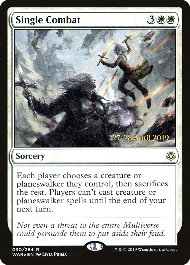 Each player chooses a creature or planeswalker they control, then sacrifices the rest. Players can't cast creature or planeswalker spells until the end of your next turn.