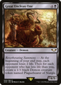 Reverberating Summons — At the beginning of your end step, each opponent loses 2 life. Then for each opponent who has less life than you, create a 1/3 black Demon creature token named Plaguebearer of Nurgle.