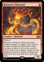 Menace Whenever Rotisserie Elemental deals combat damage to a player, put a skewer counter on Rotisserie Elemental. Then you may sacrifice it. If you do, exile the top X cards of your library, where X is the number of skewer counters on Rotisserie Elemental. You may play those cards this turn.