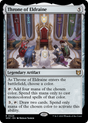 As Throne of Eldraine enters the battlefield, choose a color. {T}: Add four mana of the chosen color. Spend this mana only to cast monocolored spells of that color. {3}, {T}: Draw two cards. Spend only mana of the chosen color to activate this ability.