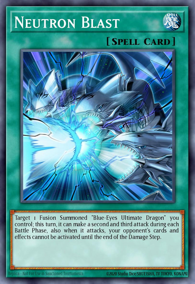 Target 1 Fusion Summoned "Blue-Eyes Ultimate Dragon" you control; this turn, it can make a second and third attack during each Battle Phase, also when it attacks, your opponent's cards and effects cannot be activated until the end of the Damage Step.