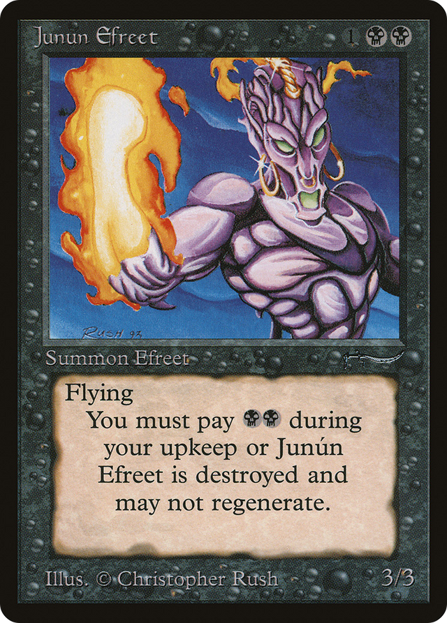 At the beginning of your upkeep, sacrifice Junún Efreet unless you pay {B}{B}.